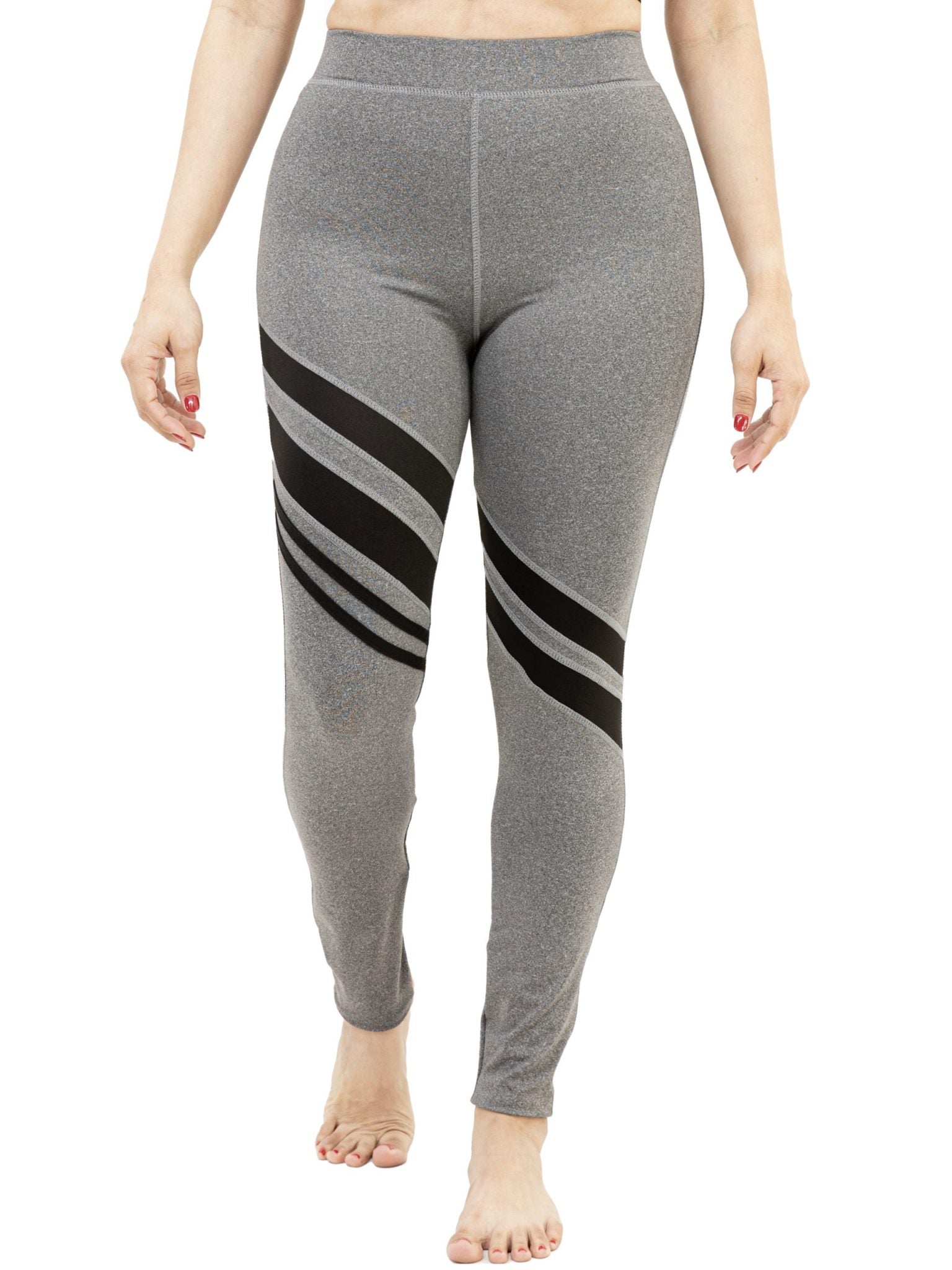 High Rise Active Yoga Pants Gray Leggings with Black Front Panels