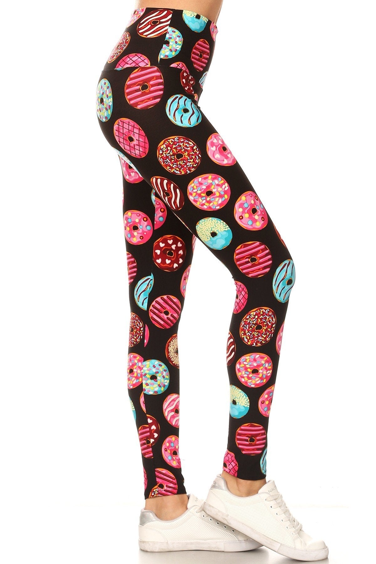Description: 5-inch long YOGA style banded lined donuts printed knit legging with high waist.