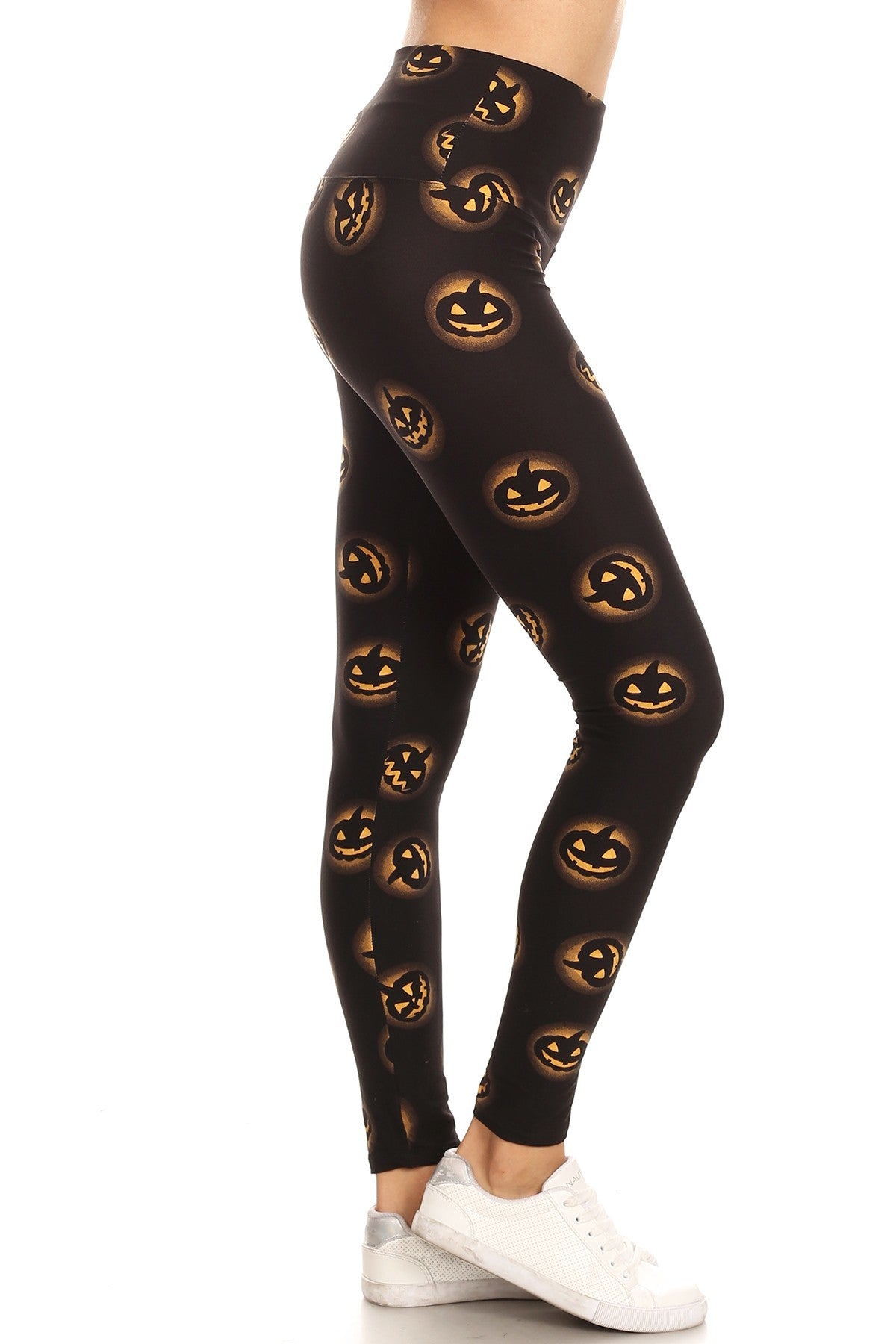 Description: 5-inch long YOGA style banded lined halloween printed knit legging with high waist.
