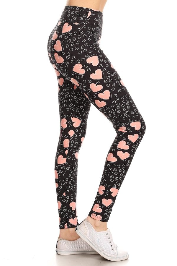 Description: YOGA style banded lined heart print, full length leggings in a slim fitting style with a banded high waist. Content: 92% Polyester 8%...