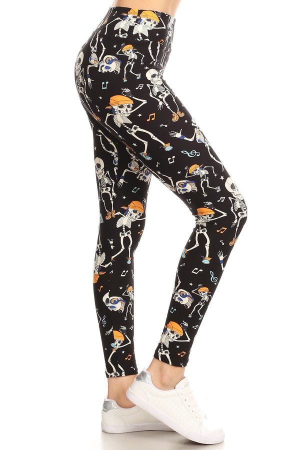 Description: YOGA style banded lined music skeletons print, full length leggings in a slim fitting style with a banded high waist.